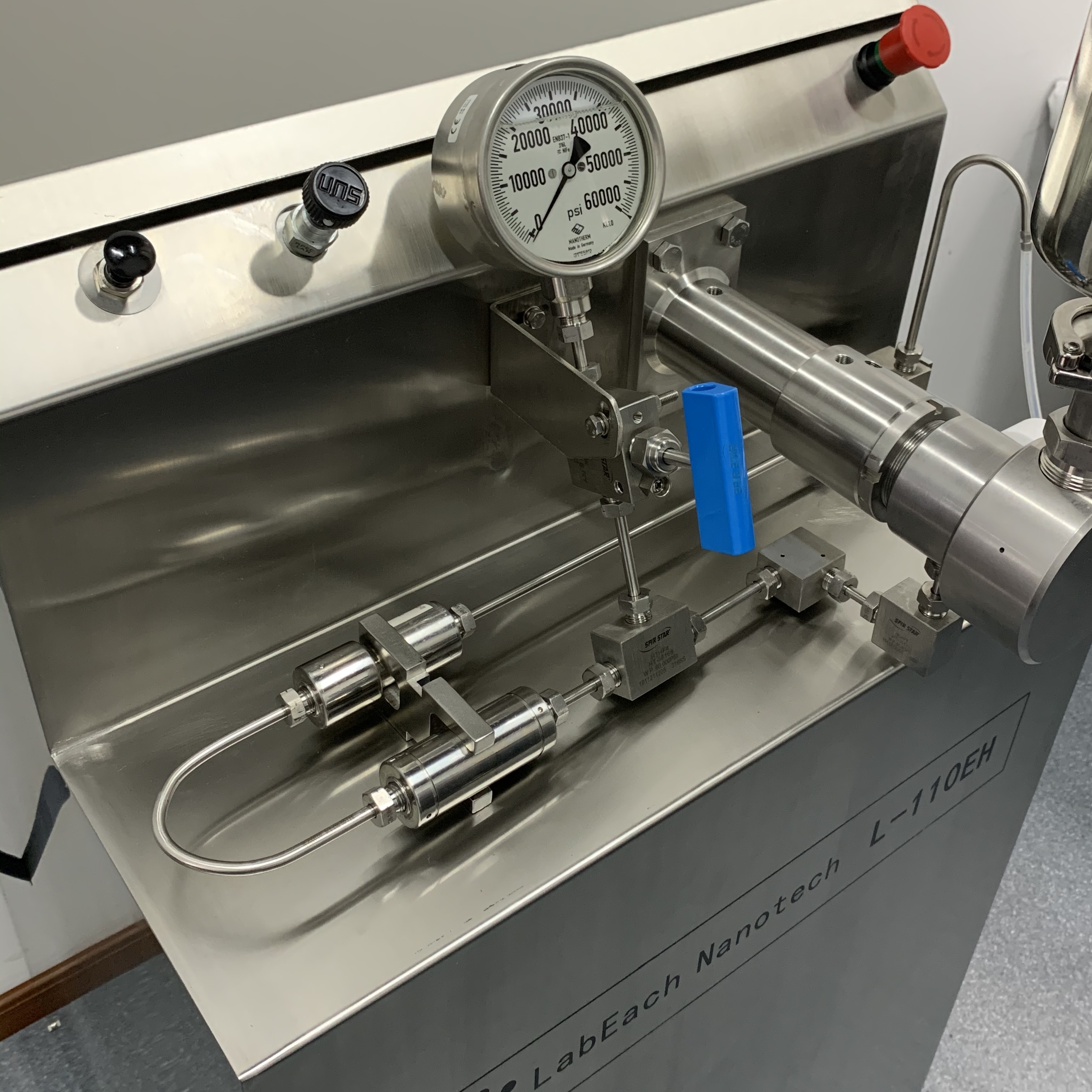 通(tōng)過電(diàn)動液壓模塊為(wèi)單作(zuò)用(yòng)增壓泵提供動力,增壓泵可(kě)Ω将液壓壓力放(fàng)大(dà)至物(wù)料所需要(yào)的(de)壓力。壓力範圍172-2068bar(2500至30000psi)可(kě)通(tōng)過溢流閥進行(xíng)調節壓力,增壓泵以恒定速率驅動物(wù)料通(tōng)過固定幾何形狀的(de)交互容室微(wēi)通(tōng)道(dào),通(tōng)過微(wēi)通(tō×ng)道(dào)的(de)過程中物(wù)料壓力增加流速加快(kuài),産生(shēng)高(gāo)剪切力、高(gāo)碰撞力等。随著(zhe)增壓泵行(xíng)程結束,它會(huì)反方向吸取新的(de)物(wù)料,進料行(xíng)程結束時(shí),增壓泵會(huì)反轉方向再次推動物(wù)料以恒定的(de)壓力重Ω複工(gōng)作(zuò)。物(wù)料離(lí)開(kāi)微(wēi)通(tōng)道(dào)後經流熱(rè)交換∏器(qì),此熱(rè)交換器(qì)溫度可(kě)調節到(dào)所需溫度。物(wù)料可(kě)再次循環進一(yī)步處理(lǐ)或進行(xíng)下(xià)一(yī)步驟處理(l§ǐ)。