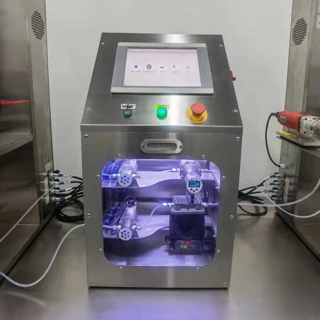 高(gāo)精度分(fēn)配系統選擇高(gāo)精度柱塞泵、注射泵、微(wēi)齒輪泵等控制(zhì)精度要(yào)求。(最高(gāo)精度達到(dào)0.001g),高(gβāo)精度流量控制(zhì)器(qì)和(hé)壓力傳感器(qì)對(duì)系統的(de)精度和(hé)壓力進行(xíng)實時(sh$í)監測,出現(xiàn)問(wèn)題,停機(jī)報(bào)警